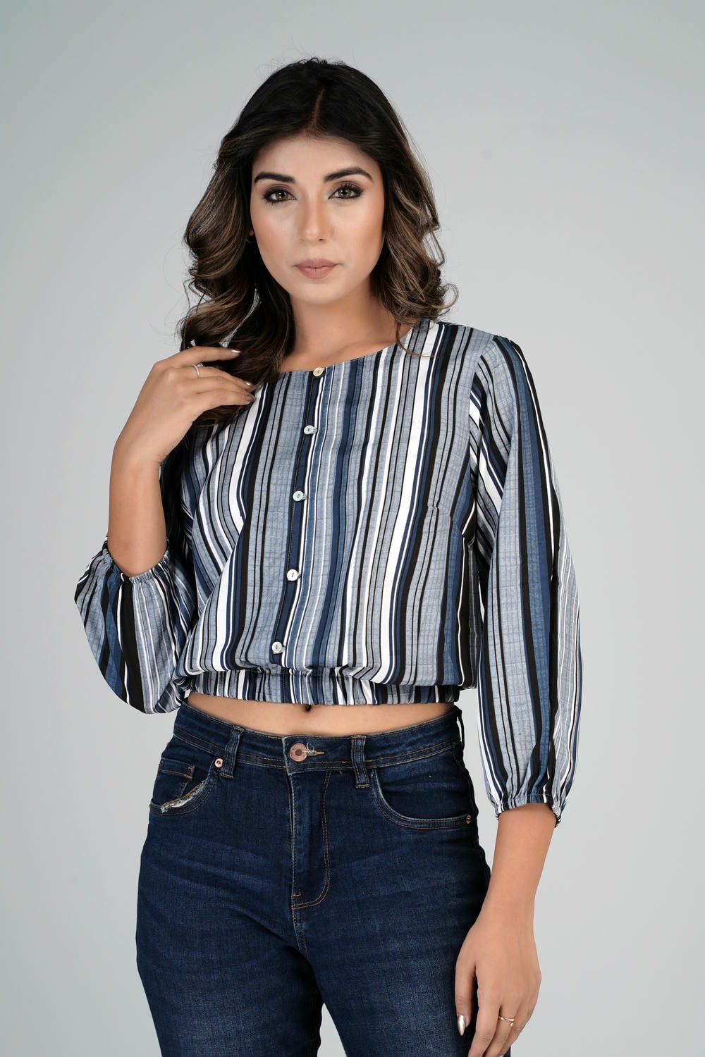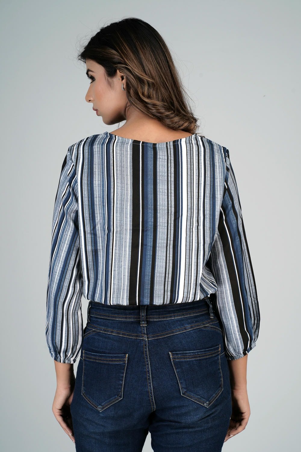 Worried about the quality of your garments? Fret not! Casual Regular Sleeves Stripe Printed Women Black Top undergoes rigorous fabric testing in high-standard labs to ensure that color bleeding and stitching durability are never a concern. You can wear this beautiful top with confidence, knowing that it has been tested for both its aesthetics and longevity.