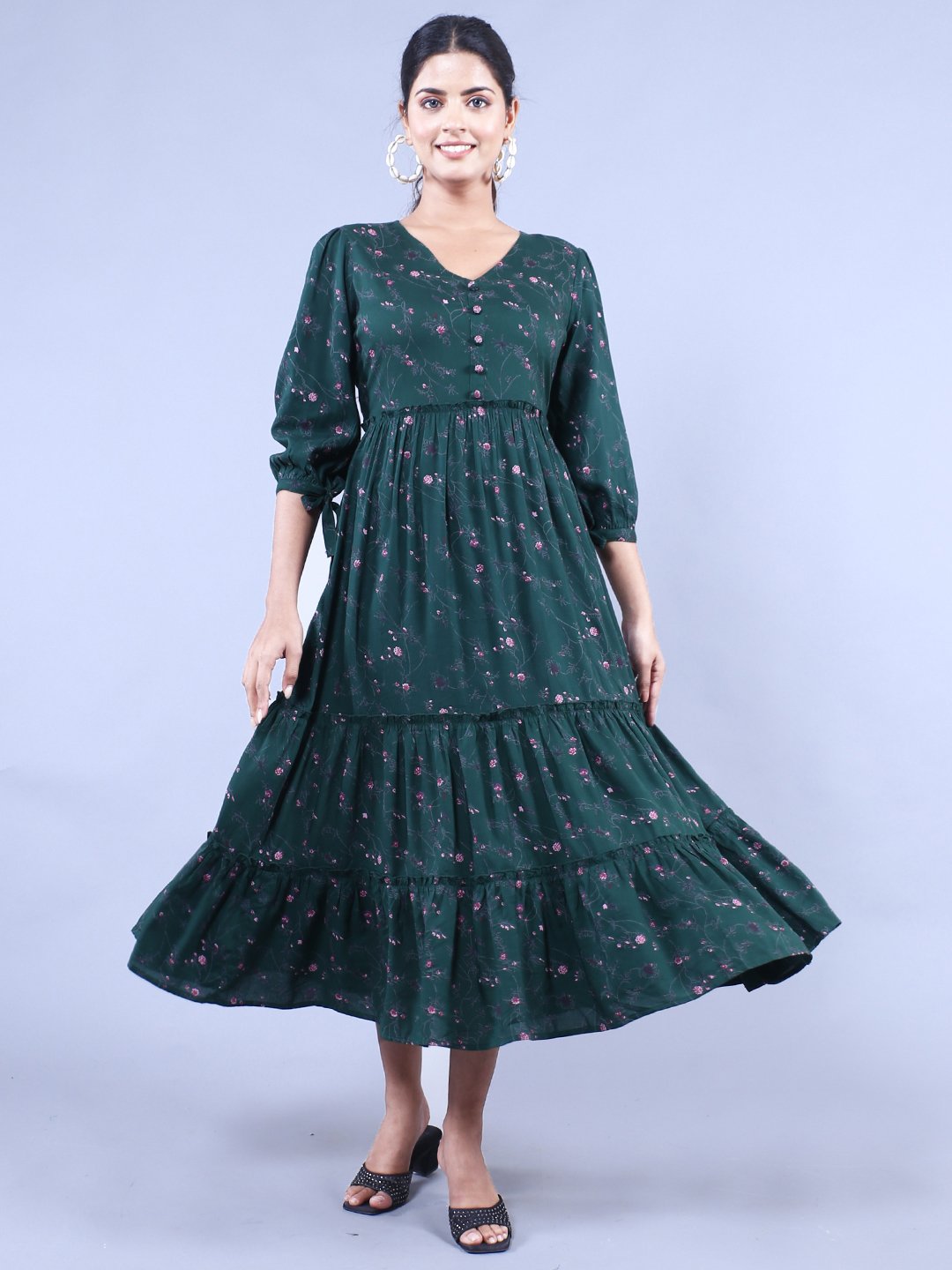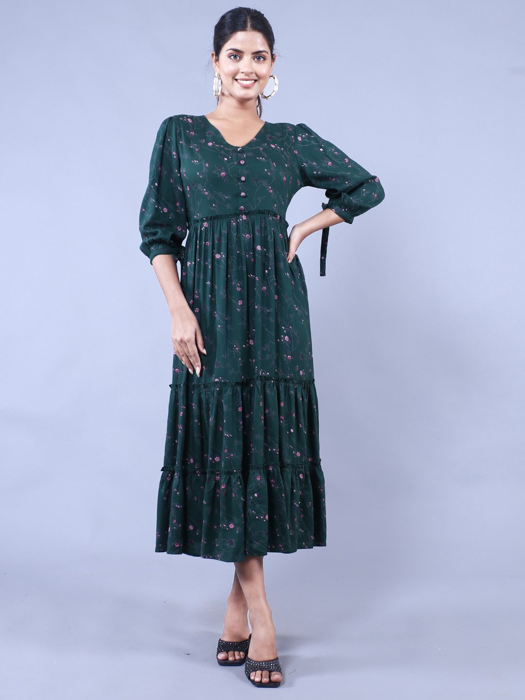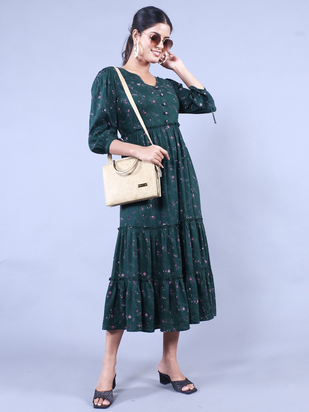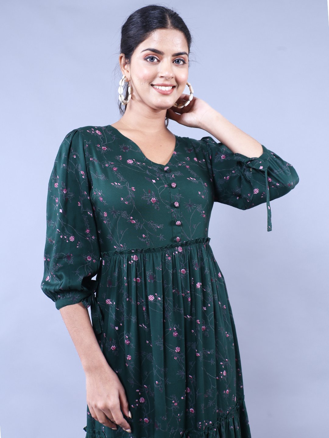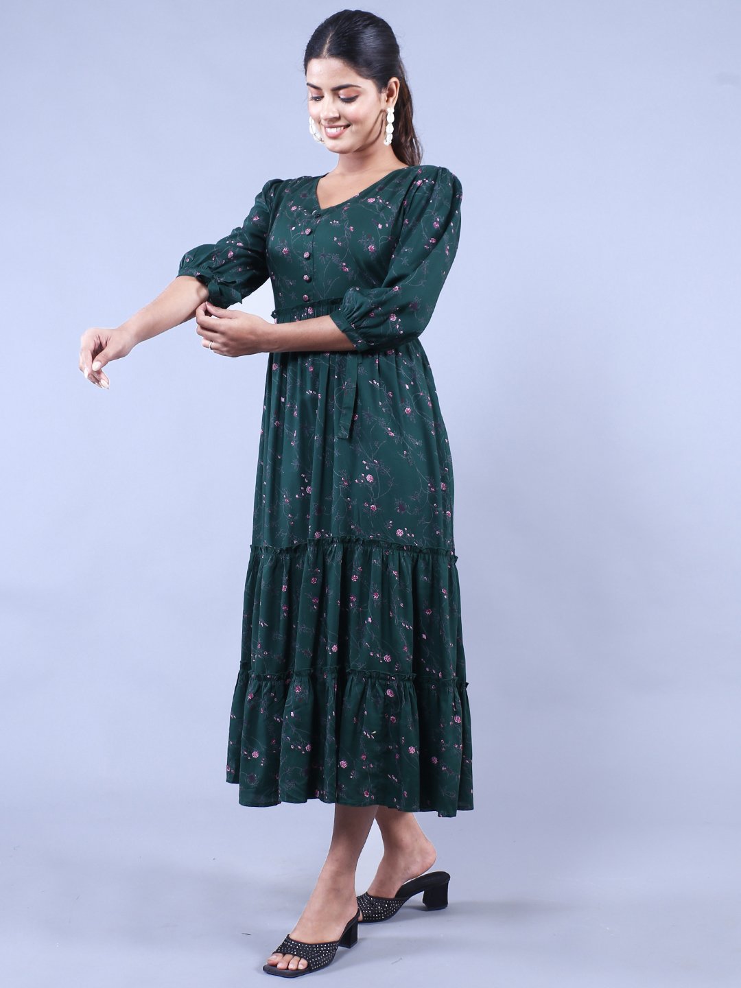 Step out in style with this stunning Green and Pink Printed Fit and Flare Maxi Dress that combines comfort and elegance effortlessly. Perfect for casual outings, garden parties, or semi-formal events, this dress delivers the ultimate blend of sophistication and versatility. Its thoughtfully designed fit and flare silhouette flatters every body type and exudes charm while allowing maximum comfort throughout your day!